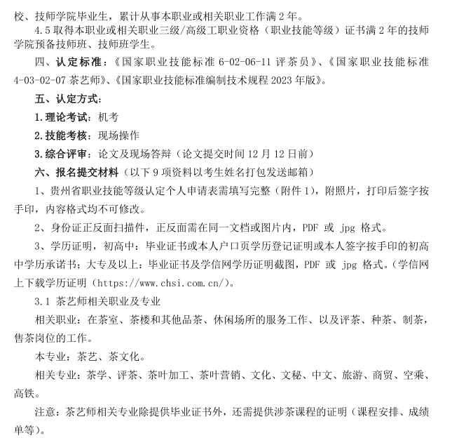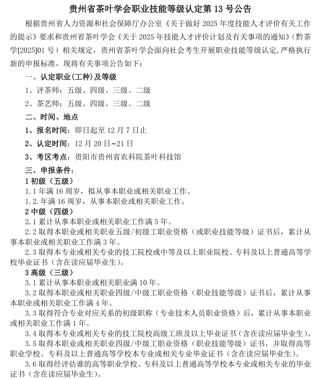 【贵州省茶叶学会】通知|2025年职业技能等级认定第13号公告