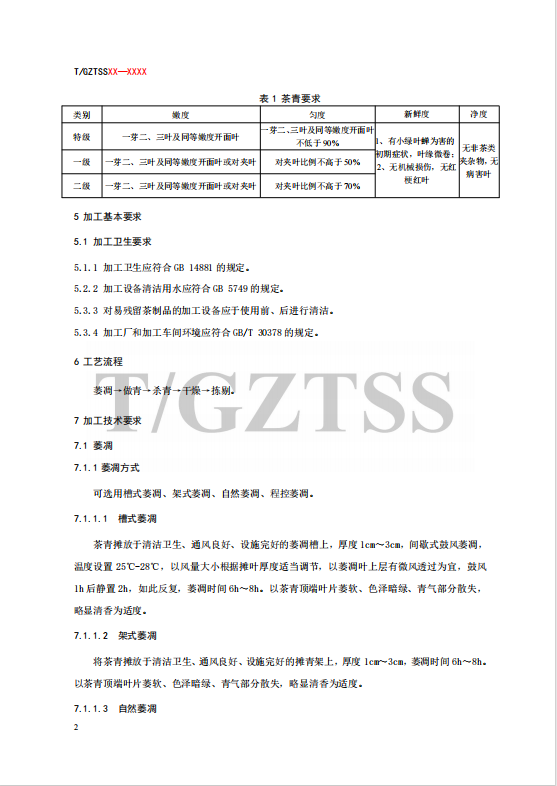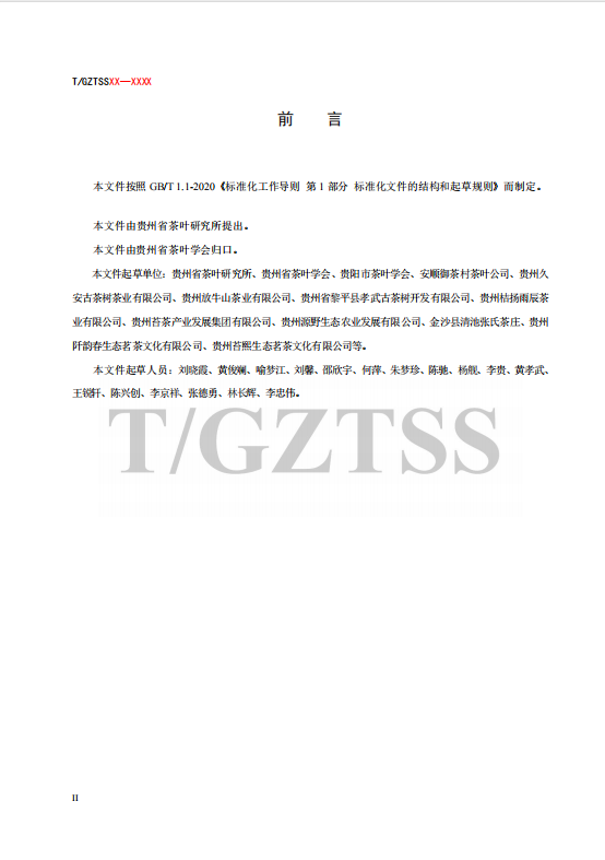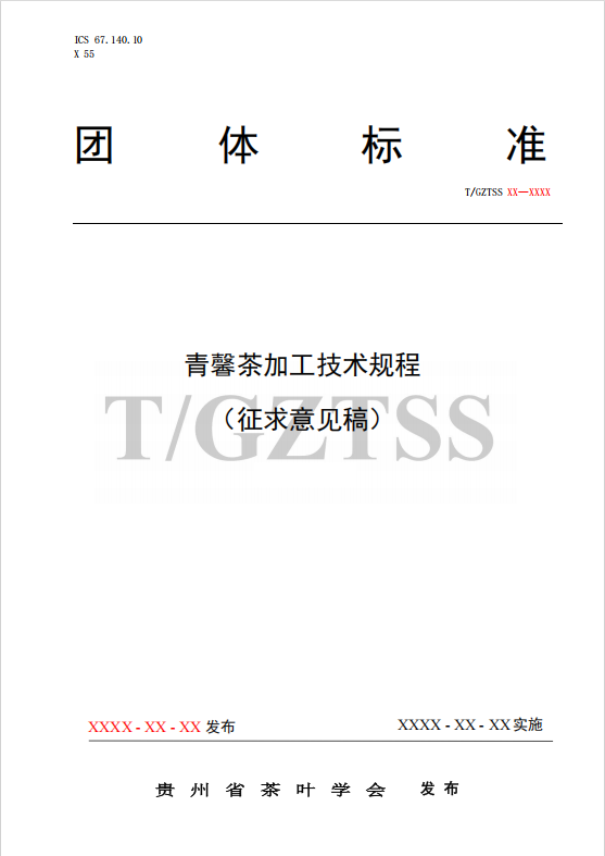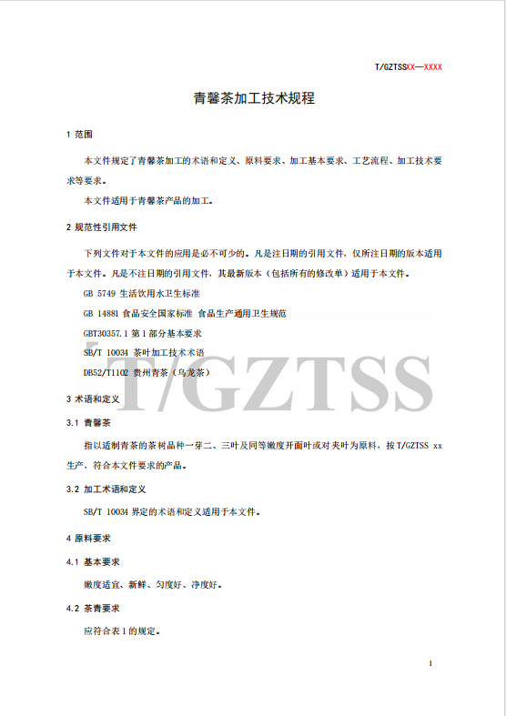《青馨茶加工技术规程》团体标准编制说明