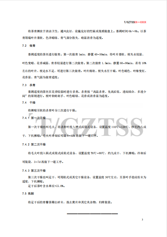 《青馨茶》加工技术规程团队标准
