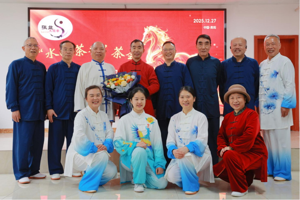 骏马奔腾迎新春,春风得意送福来。2025年12月27日,“水沸茶香”感师恩茶会在省科普教育基地贵州茶叶科技馆温馨举办,本次活动汇聚了来自贵州日报、省农业农村厅、省中医药大学等16家单位的拳友同仁。茶会的举办由贵州省茶叶研究所、贵州省茶叶学会、刘晓霞技能大师工作室支持。茶会现场,众人围坐座谈,分享习练太极拳的心得体会与健康感悟,表达对师长的诚挚感谢。随后,拳友们按单位或习练项目分组进行了太极拳汇报展示,动作行云流水,拳韵绵长,充分展现了太极文化的魅力与修养。活动中,大家品鉴了贵州省茶叶研究所“黔湄601”红茶,以及评茶技能大师工作室的创新产品“青馨茶”,煮熬了一壶老白茶、一壶六堡茶,还品尝了富有地方特色的黔北油茶,在茶香氤氲中进一步交流情谊,共话新年愿景。最后,参会人员在温馨愉快的氛围中合影留念,为此次活动画上了圆满的句号。茶会不仅弘扬了太极文化与茶文化,也搭建了跨单位交流的友谊平台。