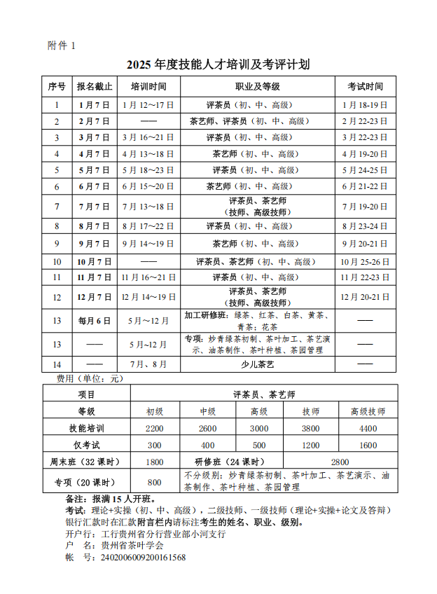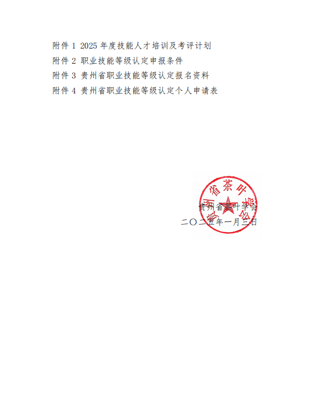 各位茶仁: 贵州省茶叶学会正在开展2025年技能人才评价报名工作,现将评价计划及有关事项通知如下,详情请见文件,敬请关注